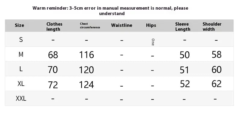 Please allow a 2–3 cm difference due to manual measurement.