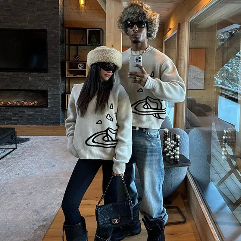 Space Planet Star Knitted Sweater - Y2K style